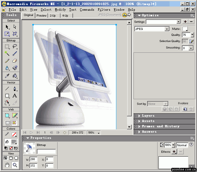 正如好多“專家”預料的那樣,fireworks mx(beta)[以后簡稱fwmx]終于在5月份左的時候出現了。估計剛剛拿到測試版的朋友們的心情肯定和我是一樣的——激動得很、并且對她充滿無限憧憬。我現在倒是真的很想知道各位在安裝后,然后真正開始使用后的真實感受,呵呵~~~可能就沒有當初想的那么美好了,至少我是這種感覺。
