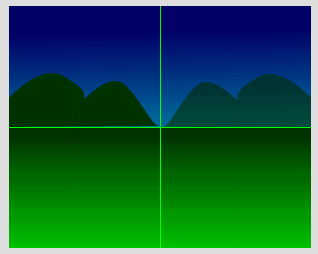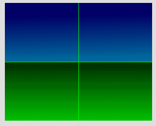 2.選擇工具面板中的矩形工具,在編輯區拖畫出一個矩形,大小為編輯區尺寸的一半.然后打開fill面板,選擇填充方式為linear線形填充,打開edit編輯顏色(從深綠色到淺綠色),用工具面板上的油漆桶工具改變填充的方向從上到下.再畫一個同樣大小的矩形,放在編輯區的上部,線形填充為深藍色到淺藍色.最后結果如圖
