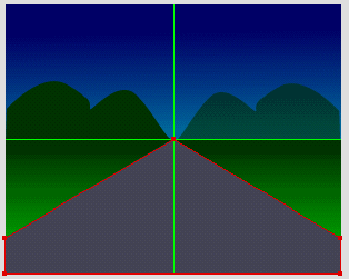4.再把斑馬線向下運動的遮罩圖畫出來,用鋼筆工具畫出一個白色的三角形,沿著公路從遠到近變大,然后克隆出一個,水平翻轉后,把它放在公路的另一邊,選中這兩個白色三角形把這兩個白色三角形組群modify>group。