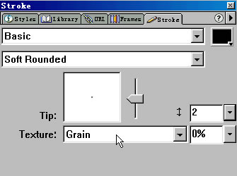 7.選中b,填充色設為無,打開storke面板,設置如下圖,在電腦鍵盤上,按兩下向上方向的鍵,再按兩下向左方向的鍵.同時選中a和b,modify---group把它們組群.給它重命名為c.得到如圖效果