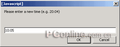 對話框給我們的提示已經很清楚了,直接在文本框內輸入新的時間,然后單擊ok按鈕,看看鐘表的時針、分針是不是按照你輸入的時間來顯示排列的啊?這個功能很有意思,mm公司現在在對產品的開放性的研發上可以說是煞費苦心啊!、通過圖形來和js掛鉤,真是很棒的思路!佩服佩服!