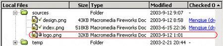 這時的logo.png前面加了一個小鎖,表示此文件已經在服務器端修改完成,防止你再次對本地文件進行修改,下次你對文件進行修改時需要先從服務器端將文件check out回來,才可以將本地文件解鎖。