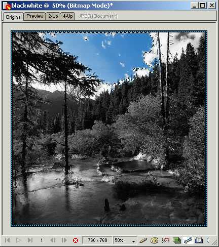 讓我們一起來(lái)感受一下firework的強(qiáng)大功能吧! 打開(kāi)一張黑白圖如下,然后用魔術(shù)棒工具做選區(qū),