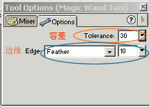 可有時(shí)在用魔術(shù)棒工具做選區(qū)的時(shí)候,往往不盡如人意,看上去明明色彩有很大區(qū)別的地方也被選中了,呵呵,不急,魔術(shù)棒里有個(gè)屬性叫“容差”。 “容差”表示用魔術(shù)棒單擊一個(gè)象素時(shí)所選的顏色的色調(diào)范圍。如果輸入 0 并單擊一個(gè)象素,則僅選擇色調(diào)完全相同的相鄰象素。如果輸入 65,則選擇一個(gè)更大的色調(diào)范圍。 這下明白了吧,如果有不明白的多試下就知道了,也可以適當(dāng)?shù)挠胑dge屬性修飾一下。
