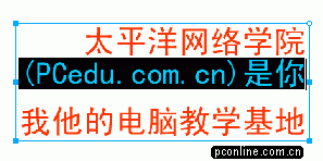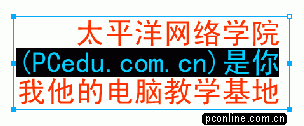 可能大家注意到了,紅色框邊內的部分是新增加的功能,這些都是在fireworks4.0中都沒有的。那么它們有些什么用途呢?讓我們先用文字輸入工具輸入一些字,這里我用的是漢儀菱心體,每輸入七個字后按回車鍵另起一段后再輸入,字號用的是46。