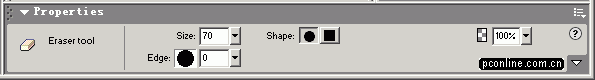 ,properties面板上又是怎樣的情況,先打開一張圖片(只有在編輯位圖時,橡皮擦才能用),此時的屬性面板如下圖所示