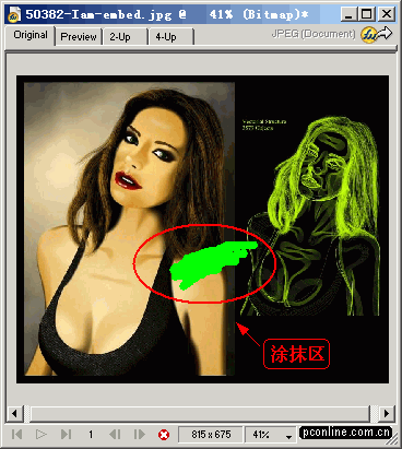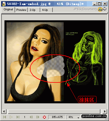 下面我們把橡皮擦的大小設置為15,edge:50,形狀為圓形,透明度為50%,然后隨意地擦拭一個圖片,效果如下