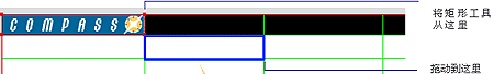 3、將矩形工具(rectangle tool)指針貼近輔助線(guides)矩形區域的一個角,按下鼠標并拖動到對角上。