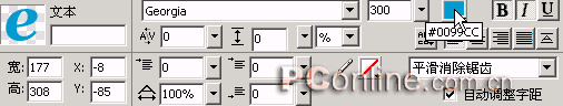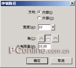 3、選中打散的文本對(duì)象,選擇菜單命令“修改|改變路徑|伸縮路徑”,在彈出的“伸縮路徑”設(shè)置框中進(jìn)行如下圖所示的設(shè)定。