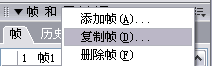 7、ok,動(dòng)畫就大概完成了,最后,回到第一幀,再執(zhí)行一次,復(fù)制一幀,選擇當(dāng)前幀之前,確定,到圖層面板中,將該元件圖刪除。