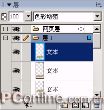 2、選中文本對象,按“ctrl+shift+d”組合鍵,連續克隆兩個相同的文本對象,并將兩個克隆對象所在層的圖層混合模式都變為“色彩增殖”方式。如下圖所示。