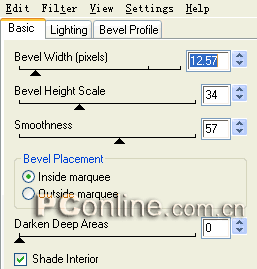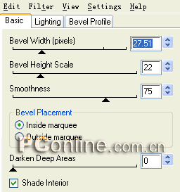 6、還是選擇屬性面板上效果菜單中的“eye candy 4000 le|bevel boss”效果命令,在彈出的“bevel boss”設置框中進行具體設置,各個參數的具體設置如下圖所示。