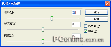 8、如果對與按鈕表面顏色或者邊緣顏色效果不滿意的話,可以通過選擇屬性面板上效果菜單中的“調整顏色|色相/飽和度”效果命令來進行調整。本步對上部圓形對象的顏色進行了調整,具體的“色相/飽和度”的設置如下圖所示
