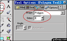 一、 雙擊工具面板上的多邊形工具,并在其tool option面板中選擇shape為polygon,sides為3。