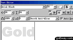 二、 使用工具欄中的文字工具,在彈出的text editor面板中進行如下設置,鍵入文字gold。