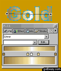 四、 打開fill(填充)面板,填充類型為linear,點擊edit按鈕,進行漸變色的編輯,看下圖的詳細設置。