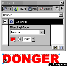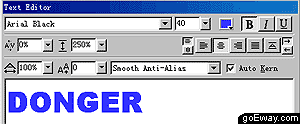 二、使用工具面板中的文字工具,在text editor面板中輸入如下donger。字體為arial black.尺寸為40,顏色為藍色。點擊ok表示確定。