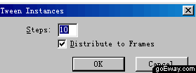 八、在跳出的對話框中進行如下設置:steps設為10,在distribute to frame前面打上鉤,這樣的話就會變成動畫效果