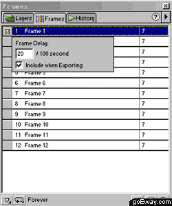 九、在frame面板中,把每幀的時間改為由7改成20。因為原先速度太快了。