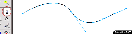 二、 用鋼筆工具鉤一條路徑,由于這兒只是個教程,教你學會如何制作漸變色線條,所以路徑是隨便畫的,當然你也可以使用鉛筆、筆刷、直線工具等所有可以用來畫路徑的工具來畫,所得到的只是形狀不同而矣。默認的線條填充色為黑色。