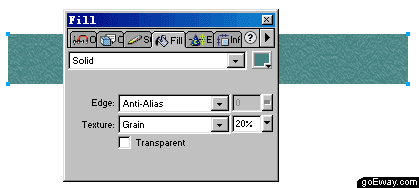 二、 選擇工具面板中的矩形工具,在畫布上畫一個矩形,打開info面板,設置其w值為400,h值為50,按回車確認。接著打開fill面板,選擇填充類型為solid,顏色為綠色。texture中選擇grain,透明度為20%。效果如下圖所示