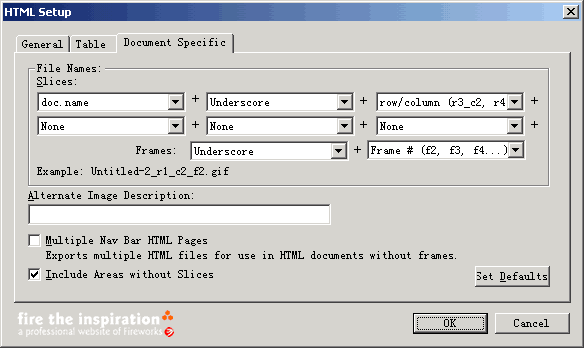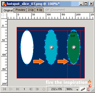 | 使用熱區和切割(hotspots and slices)(下) /接下來,我們來講切割。前面已經說過,設計師為了加快頁面加載的速度把大圖片分割成小圖片放在表格中,這在以前是一件費時又費力的事,現在使用了切割fireworks會按照你的切割自動生成html的表格代碼,你只需要將生成的代碼放在頁面的相應位置就可以了。 可能有的朋友要問,難道圖片切割之后下載速度就加快了嗎?對,如果合理的切割的話,確實可以減小下載量,因為將同樣顏色的大色塊切割成一個單獨的文件并使用較少的顏色輸出就會得到尺寸較小的文件。另一個切割圖片的理由是可以減少瀏覽者的心理等待時間。當你等待一副大圖片出來時會覺得速度很慢,因為這時你什么也不能做,但是當圖片切割后,小圖片很快就能出來并且一張接著一張,在下載的過程中瀏覽者就能夠先看到圖片的一部分,因此他不會有等待的感覺,這就是為什么我們要使用切割的道理。其實道理和之后使用在網絡多媒體播放中的流式技術是異曲同工的,雖然可能這個比較不是很恰當。 除了用來分割圖片,在fireworks中翻轉圖、按鈕、導航條等帶有交互動作的對象都是基于切割的。 創建切割非常容易,只要使用切割工具如同畫矩形一樣就可以創建出需要的切割,使用多邊形切割工具(polygon slice tool)更可以創建出任意形狀的切割,如圖: ![]() 圖上綠色的區域就是切割的區域(fireworks默認使用綠色表示切割,藍色表示熱區,當然你可以通過修改設置來改變他們的顏色,但是我不建議你們這樣做),紅色的線條是圖片輸出后生成的表格的線條,這些紅色的線條組成的一個個矩形就對應了表格的每個單元格。 你可能注意到了,當使用不規則形狀做切割時,fireworks會沿著這個多邊形的最邊緣建立一個矩形,這是因為表格和圖片只接受矩形這種形狀,輸出后的結果將會被處理成在一張矩形的圖片上有一個多邊形的熱區這種形式。 說了這么多,我們來動手做一下,我們的目標是要創建一個圓形的切割,雖然沒有圓形的切割工具,但是我們可以把一個圓形的熱區轉換成切割(這也是創建精確切割圖形的方法)。先用圓形工具(ellipse tool)在畫板上畫一個圓,然后選擇insert->hotspot創建一個和圓形一樣形狀的熱區,最后選擇insert->slice把熱區轉換為切割。如果中間沒有經過熱區這一步,而直接選擇insert->slice,那么fireworks將創建一個矩形的切割。 ![]() 選中這個切割,打開object面版(window->object),可以看到和切割相關的屬性:鏈接的url地址,alt的文字,打開鏈接的方式(target)這些都和熱區一樣,auto-name slices是用來設置是否自動為切割的圖片命名。 ![]() 在type菜單里可以看到2項:image和text。選擇image切割就會被輸出成圖片保存;選擇text后,可以在object面版中輸入文本格式的文字,輸出后這部分切割會留出空白的單元格用文本填寫。這個功能對于需要經常更改消息的頁面相當方便,這樣就不用每次都創建圖片。 ![]() 在最后輸出之前,選擇file->html setup來到document specific這項可以設置fireworks自動命名文件名的規律,一般沒有特殊要求就使用默認設置吧。 ![]() 然后就可以輸出html代碼了,選擇file->export完成最后的工作。最后我要說的是,在輸出時選擇include areas without slices的話,那么畫板上沒有切割的部分也將被輸出成等同大小的圖片,如果不選擇此項,那么fireworks只會把有切割的部分生成圖片,沒有切割的部分用一張1x1的透明gif圖片(pacer.gif)撐開,使得表格在不同的瀏覽器中看起來一樣。我的建議是使用spacer.gif撐開表格,至于道理嘛,我想我不說你也應該明白。 |