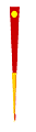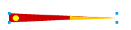 工具,將其變小,填充色改為金黃色。疊放在紅三角形的上面。再用圓形工具畫一個小圓,放在如下圖的位置,作為一種點綴,當然你們也可以用別的形狀或是不用。這樣一根扇形的骨架就簡單地完成了。