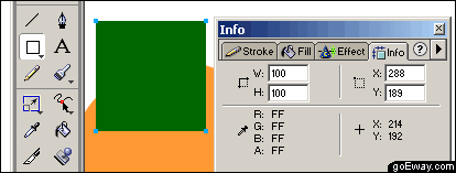 二、 在工具面板中,選擇矩形工具,按住shift鍵,畫一個正方形,在info面板中設置正方形的長寬為100*100