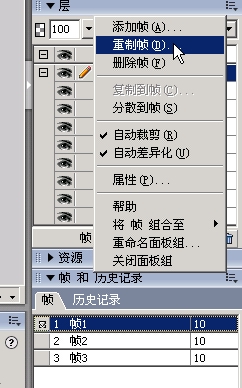 5. 復制第1幀,在第1幀之后,這時創建了第2幀。
