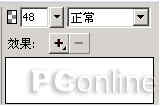 9、還是選中位于上層的位圖對象,在屬性面板上的效果區域進行調解。圖層的混合模式保持“正常”不變,將不透明度的數值做一個調整,此處設為了“48”。具體設置請參看下圖。