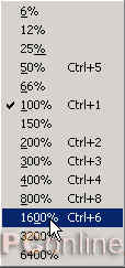 4、單擊編輯區狀態欄上的視圖比例切換按鈕,將視圖比例設為“1600%”,當然,通過按“ctrl+6”組合鍵,也同樣可以達到視圖切換的效果。具體操作可以看下圖示范: