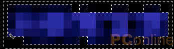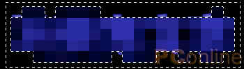 6、按“ctrl+1”組合鍵,將編輯區視圖切換到“100%”視圖狀態。按“ctrl+v”組合鍵,將剛剛“截屏”的圖片粘貼到編輯區,拖動粘貼的圖片,使得馬賽克區域能夠覆蓋住第2步操作中輸入的文本對象。為了便于后面的操作,選取工具箱的“選取框”工具,將粘貼圖片的馬賽克區域全部圈選中,然后按“ctrl+shift+i”組合鍵,將圈選區域反選,然后按鍵盤上的“delete”鍵,將反選部分刪除掉,此刻編輯區效果請看下圖: