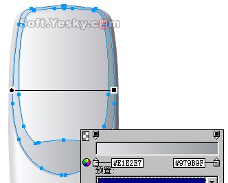 再用鋼筆工具畫如下圖般的對稱路徑,也用線性漸變加以填充,漸變色由#b7bbc6至#e0e1e6,如圖11。