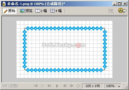 6) 在層面板中同時選擇合成路徑和矩形路徑,點擊 “修改”菜單,在下拉菜單中選擇“組合路徑-打孔”,得到如圖7所示的“郵票”的鋸齒邊緣。