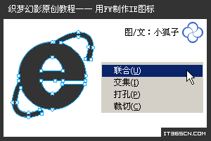 11、全選,選擇菜單“修改 組合路徑 打孔”,得到ie圖標的輪廓路徑。