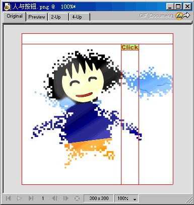 在工具欄上選擇slice tool(切片工具),在文字上畫一個矩形。切片工具的功能是制作小圖片,以及將一張大圖切成數張小圖后以表格的形式進行發布,以增快下載的速度。每一個切片都可以添加鏈接或者是做為按鈕。切片后的區域以綠色表示,我們可以在下方的properties面板上精確調整切片的位置與大小(如圖2)。
