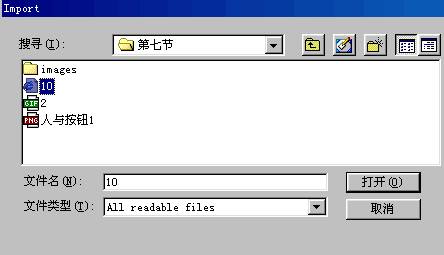 打開fireworks mx,先新建一個圖形文件,文件的尺寸不妨設置得大一點,比如700*700。然后使用菜單命令file-import,打開import對話框(如圖2)。