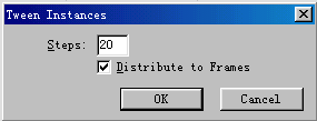 第三步:讓飛機飛起來。選擇modify > symbol > tween instances,在出現的對話框中,step欄改為20,表示飛機從右下方飛到左上方的過程要用到20幀,勾上下面的小方框,如圖5,點擊ok。選擇window > frames,打開幀面板,出現了一個有22行的幀編輯框,按著shift鍵把他們全部選中,點擊幀面板右上角的小三角形,選擇properties,在出現的對話框中把20改為10,使每一幀的播放時間由0.2秒變為0.1秒,再勾上下面的小方框,如圖6。在幀面板的任意位置點一下鼠標,飛機的動畫就完成了。按下屏幕右下角的播放鍵看一看,你會看到飛機由遠處飛來,飛得越近就顯得越大,最后從畫面的左上方飛出。