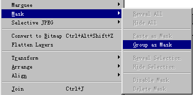 8、同時選中圖案與文字,在菜單中選擇:modify--mask--group as mask。