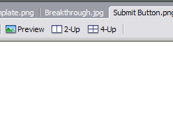 現(xiàn)在多文檔打開時(shí)可以使用標(biāo)簽切換,類似于dwmx的風(fēng)格。原來的預(yù)覽、2幅、4幅標(biāo)簽被作成了按鈕放在標(biāo)簽下面的工具欄區(qū)域里,比較方便。
