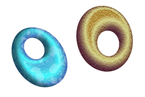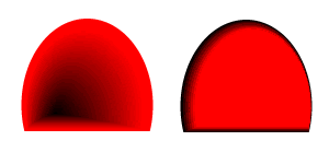 先來(lái)畫個(gè)簡(jiǎn)單圖形來(lái)嘗試一下這個(gè)新功能吧!這里我們只用了兩種顏色,通過(guò)起始點(diǎn)角度變化來(lái)看效果。左圖已經(jīng)出現(xiàn)深邃感,右圖能感覺到光照的方向。等高漸變填充的最大優(yōu)勢(shì),就是現(xiàn)在可以用漸變色來(lái)體現(xiàn)立體感。