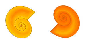 再來(lái)個(gè)粗細(xì)不均的圖形,我們以螺旋為范例,可以看出等高漸變填充的漸變相當(dāng)平滑,它可以根據(jù)周邊的距離來(lái)進(jìn)行漸變色計(jì)算,首先滿足的是最外層色彩,當(dāng)漸變距離超過(guò)矢量物件本身的輪廓間距時(shí),越靠近中心的顏色就越早被犧牲掉。