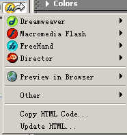 編輯區和fw4也幾乎沒什么分別,到是右上角的fw圖標有點顯眼,點擊一看,原來是和其他的mx系列軟件結合的更加的緊密了。可以直接將fwmx里的文件直接導入到dwmx、flashmx甚至freehandmx等軟件中去。果然是mx的時代,就如同使用同一個軟件一樣。