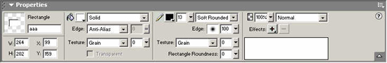 如同dw和flashmx一樣,fwmx的屬性面板對應不同的對象也會發生不同的變化。
