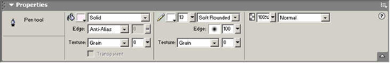 點中鋼筆工具的圖標(biāo),這時properties面板將會顯示pen tool的一些屬性,如下圖所示: