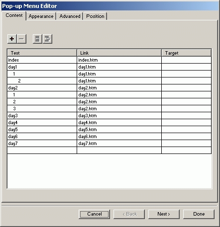 在彈出的對話框中分別將相關選項填上,確定,一個簡單實用的pop菜單就作好了。