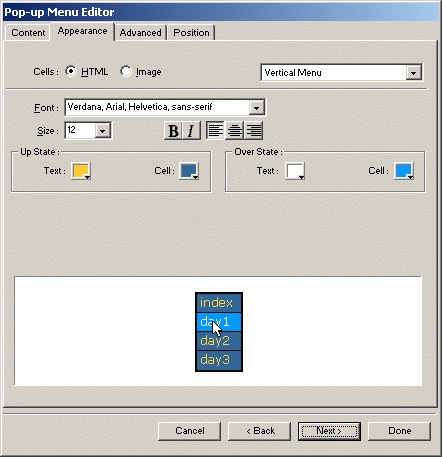 fwmx在網頁制作上的進步其實很大的。比如reconstitute table就是個很不錯的方便功能,但是千萬別把它作為抄襲的工具(當然也不是所有的葉子都能抄襲的);pop菜單用fwmx做起來也很方便,但是還存在著定位的問題,需要手動改改代碼。畢竟fireworks不是真正的網頁制作工具,只是一個輔助工具。