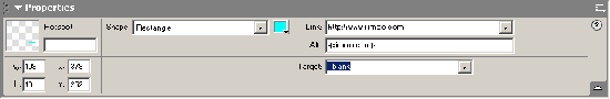 接著在圖片的右下角寫上我的網站的地址,選中,將其作成一個hotspot,在properties面板中填好網站連接地址、注釋等等。