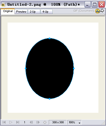 在工具欄上選擇畫圓工具(ellipse tool),并且在properties面板上設置填充色為黑色,邊框色無(如圖1),繪制一個橢圓(如圖2)。目前不需要理會橢圓的大小,只要便于你編輯就可以,我們將在后面再更改其大小,由于fireworks繪制的橢圓是矢量圖形,我們不需要擔心在改變大小后影響清晰度。