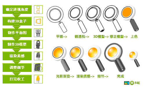 在實際制作中,一套圖標要風格統一。你可以使用同樣角度的透視或者同樣的配色或者同樣的表現風格,這里我使用了同樣的透視,這就意味著整套圖標的透視都用同一個透視的命令。